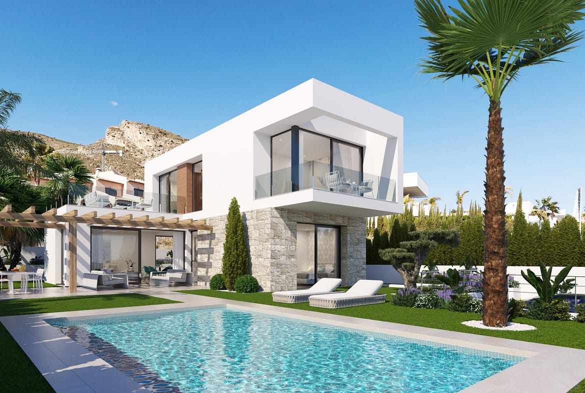 New Build Villas Finestrat 3 bedroom – 3 bathroom – Build 145 m2 – Plot 505 m2 New Build residential of modern villas located in Sierra Cortina, Finestrat. Modern...