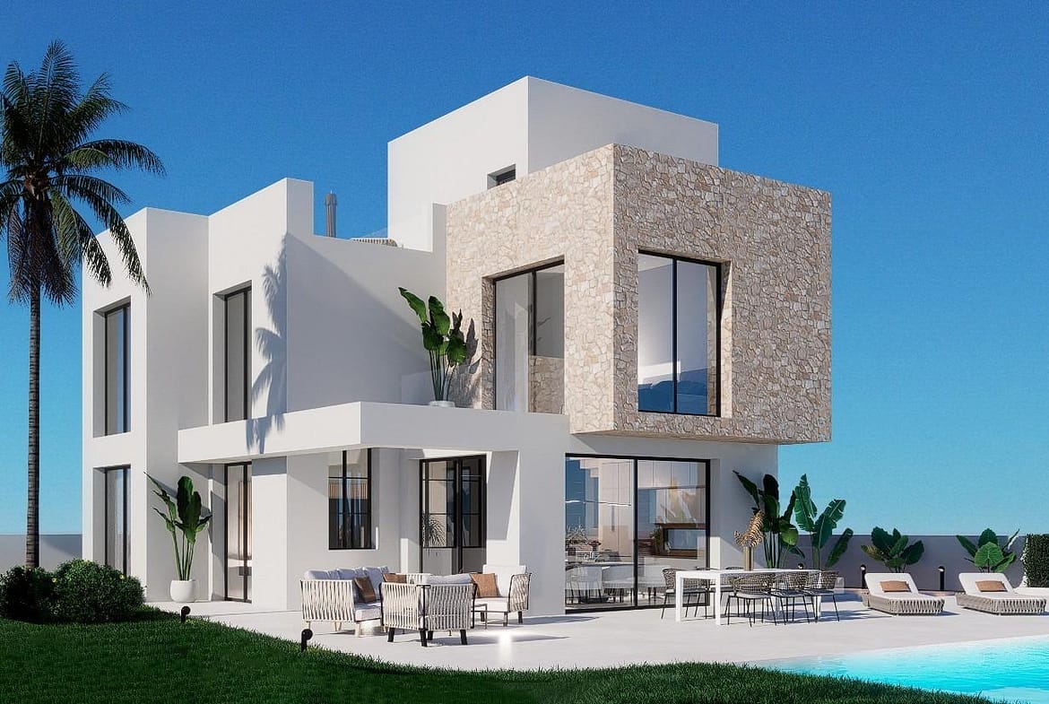 Elegant Villas in Finestrat 3 bedroom – 3 bathroom – Build 159 m2 – Plot 446 m2 EXCLUSIVITY IN A NATURAL ENVIRONMENT NEXT TO THE MEDITERRANEAN SEA !!! Minimalist...