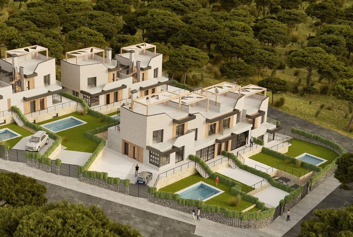 3 bedroom – 2 bathroom – Build 213 m2 – Plot 330 m2 NEW BUILD SEMI-DETACHED VILLAS IN POLOP New Build modern townhouses and semi-detached villas with several terraces....