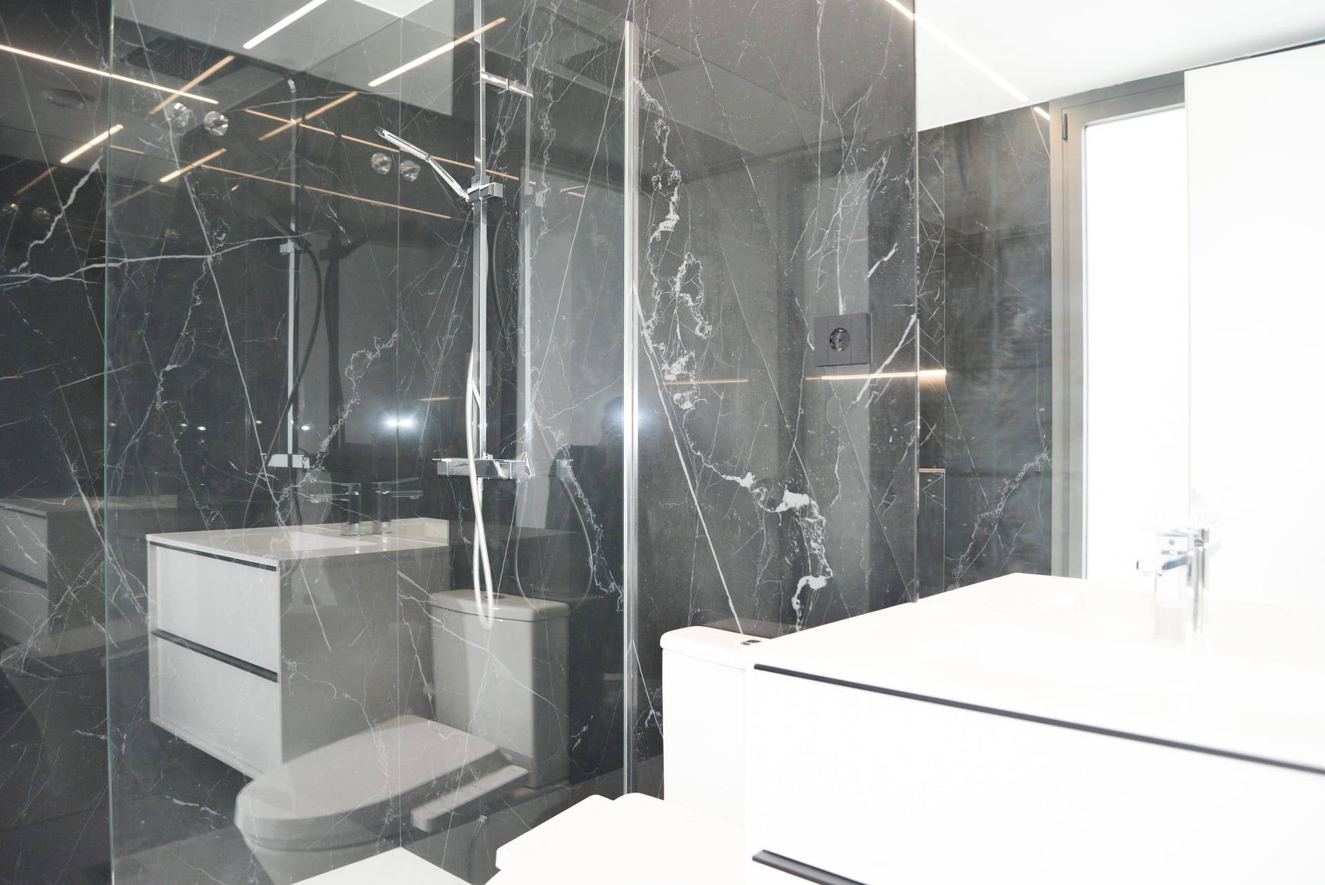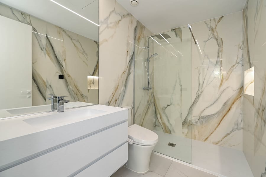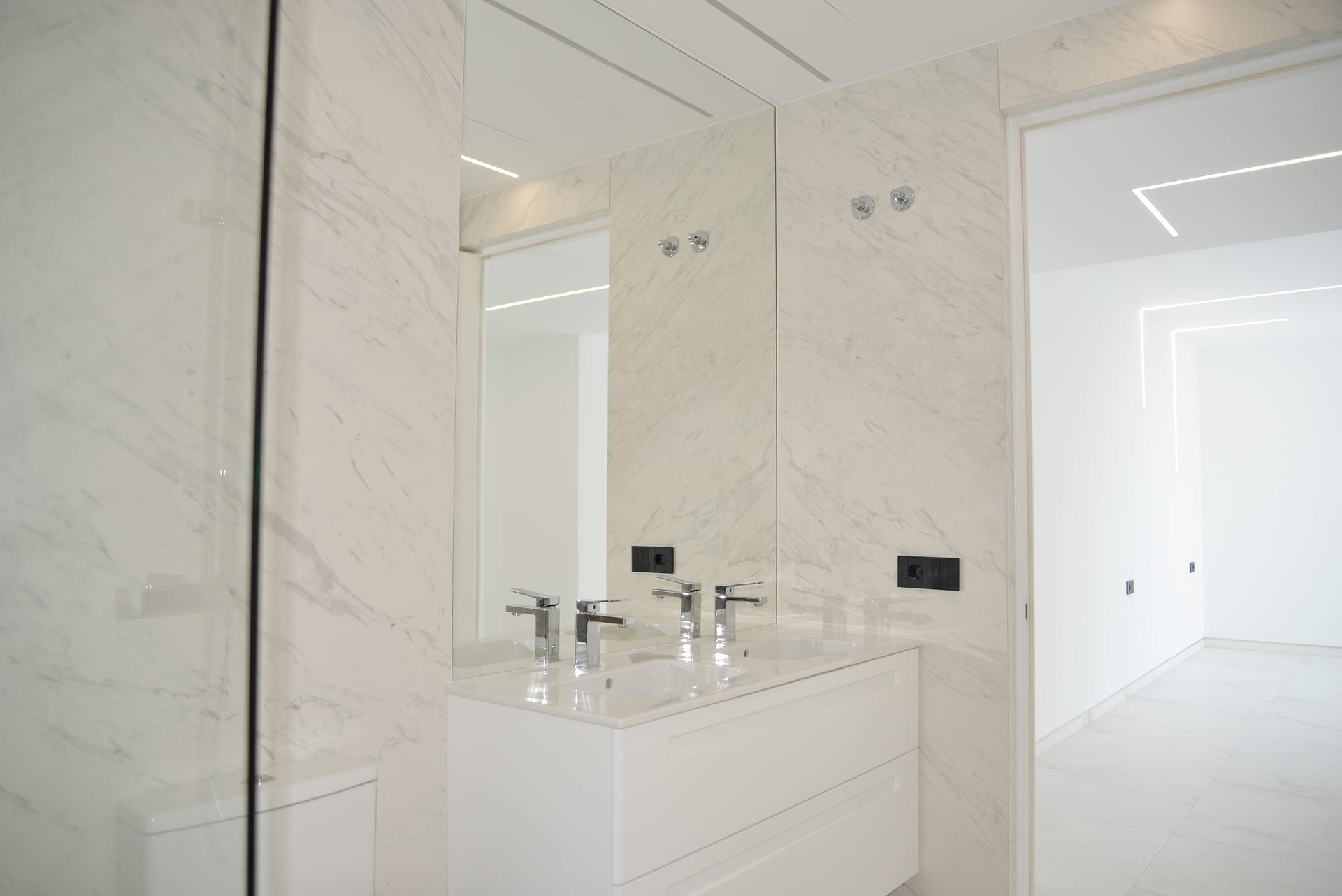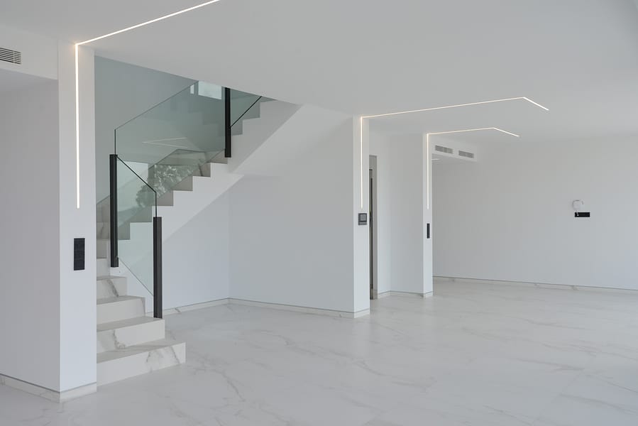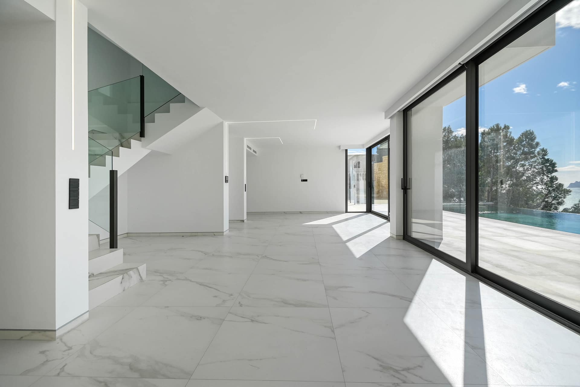 The first floor boasts four spacious en-suite bedrooms, each crafted with meticulous attention to detail. The primary suite enjoys direct access to a private terrace to enjoy the wonderful sea views.