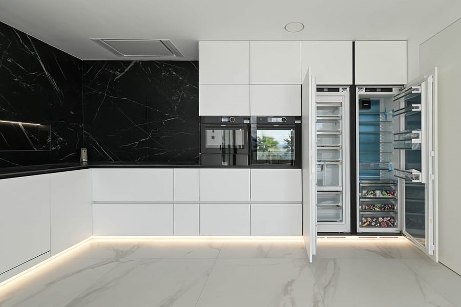 Designed to embrace the Mediterranean lifestyle, the villa features expansive terraces, perfect for both relaxation and sophisticated entertaining. The infinity pool is frames by multiple seating and dining areas. Including a bespoke outdoor kitchen and barbecue—allowing for effortless alfresco gatherings all year round.
