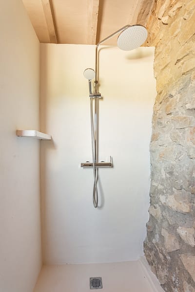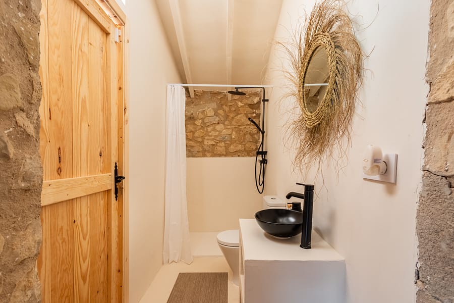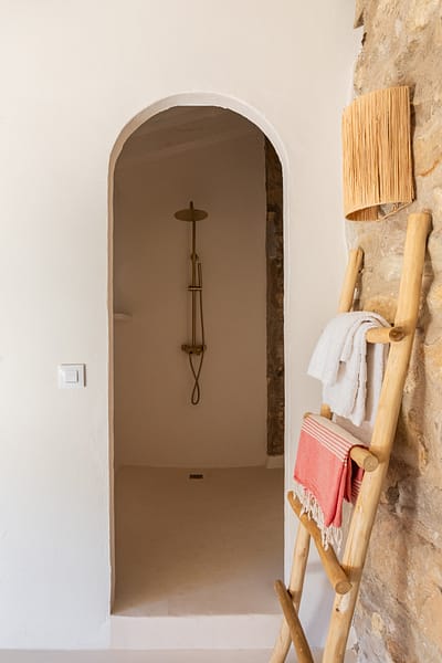Ensuite bathrooms exude a spa-like elegance, boasting rain showers, handcrafted ceramic basins, and brass fittings that perfectly complement the original stone walls. These thoughtful details create an atmosphere of understated luxury and refinement.