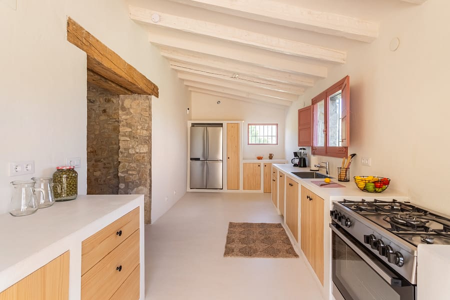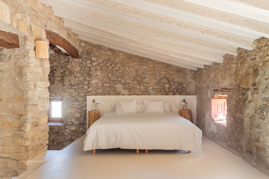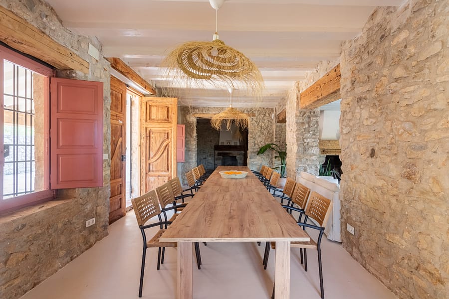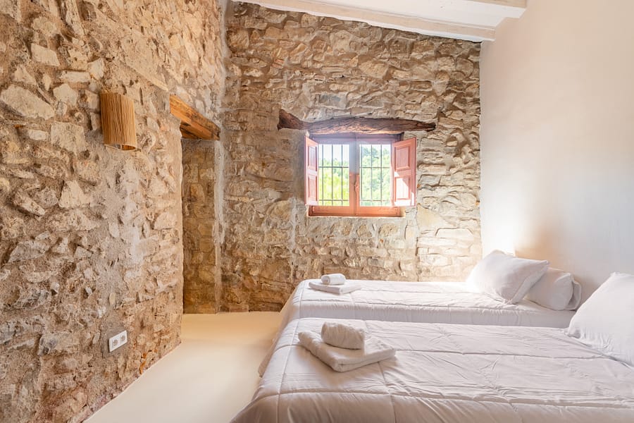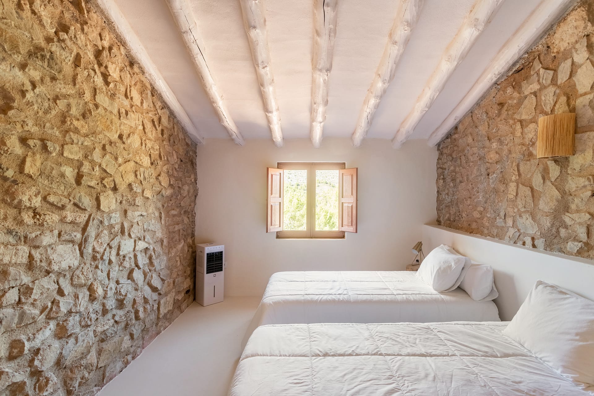 Casa Amoros offers a retreat for all seasons. The natural stone walls maintain a cool interior during the summer, while three wood-burning fireplaces provide warmth and coziness in winter. For added comfort, air-cooling systems are available in every room, ensuring an ideal atmosphere no matter the time of year.
