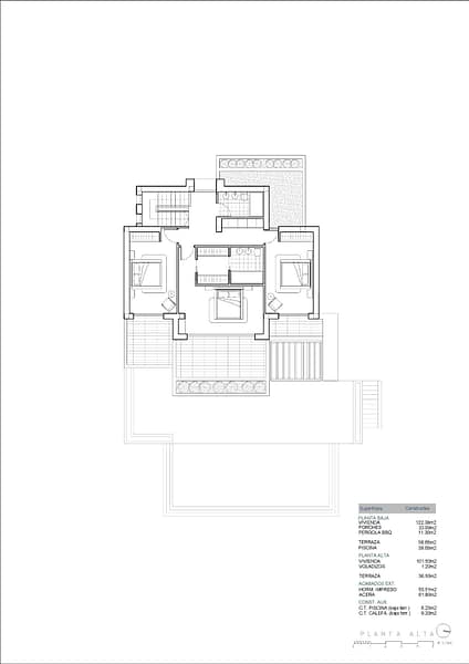 On the upper floor, there are three additional bedrooms (including the master suite with en-suite bathroom and private terrace), as well as a second terrace with beautiful views. The home is fully equipping for year-round comfort and includes underfloor heating, ducted air conditioning, and high-quality finishes throughout. Additional features include a technical room for the heating system and a separate room for pool equipment, both located underground to maximize space. And functionality. Secure your dream villa in La Fustera, Benissa Costa. And embrace the ultimate Mediterranean lifestyle with breathtaking sea views and unmatched comfort.