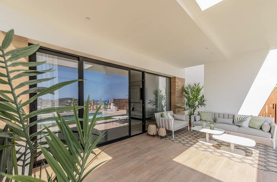 NEW BUILD VILLAS WITH PRIVATE POOL AND GUEST HOUSE New Build an exclusive residential complex of villas located in Finestrat close to the marvellous beaches of Benidorm. New model of beautiful villa with a guest house on the plot. There are 17 villas of this type for sale. The villa is build on two floors. On the ground floor, there is a bright living room, with large windows. And direct access to the pool and garden, bedroom and bathroom.
