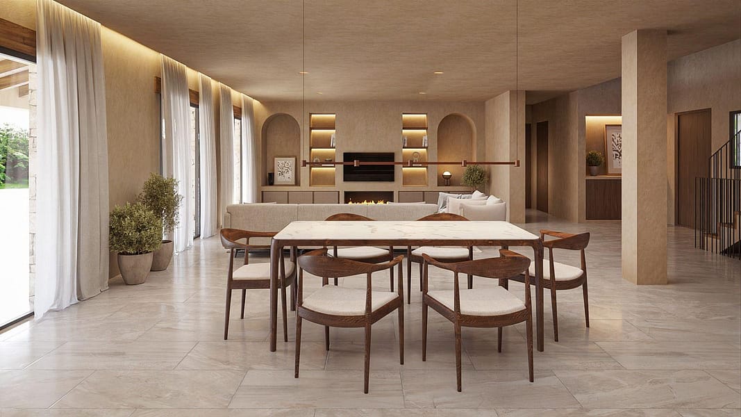 This Mediterranean finca style villa has 3 floors that are connected with an internal staircase. It has a large open-dining room-dining room. The kitchen is fully equipped and has an island for cooking. It has 4 bathrooms and a guest toilet. The property also has basement and laundry.