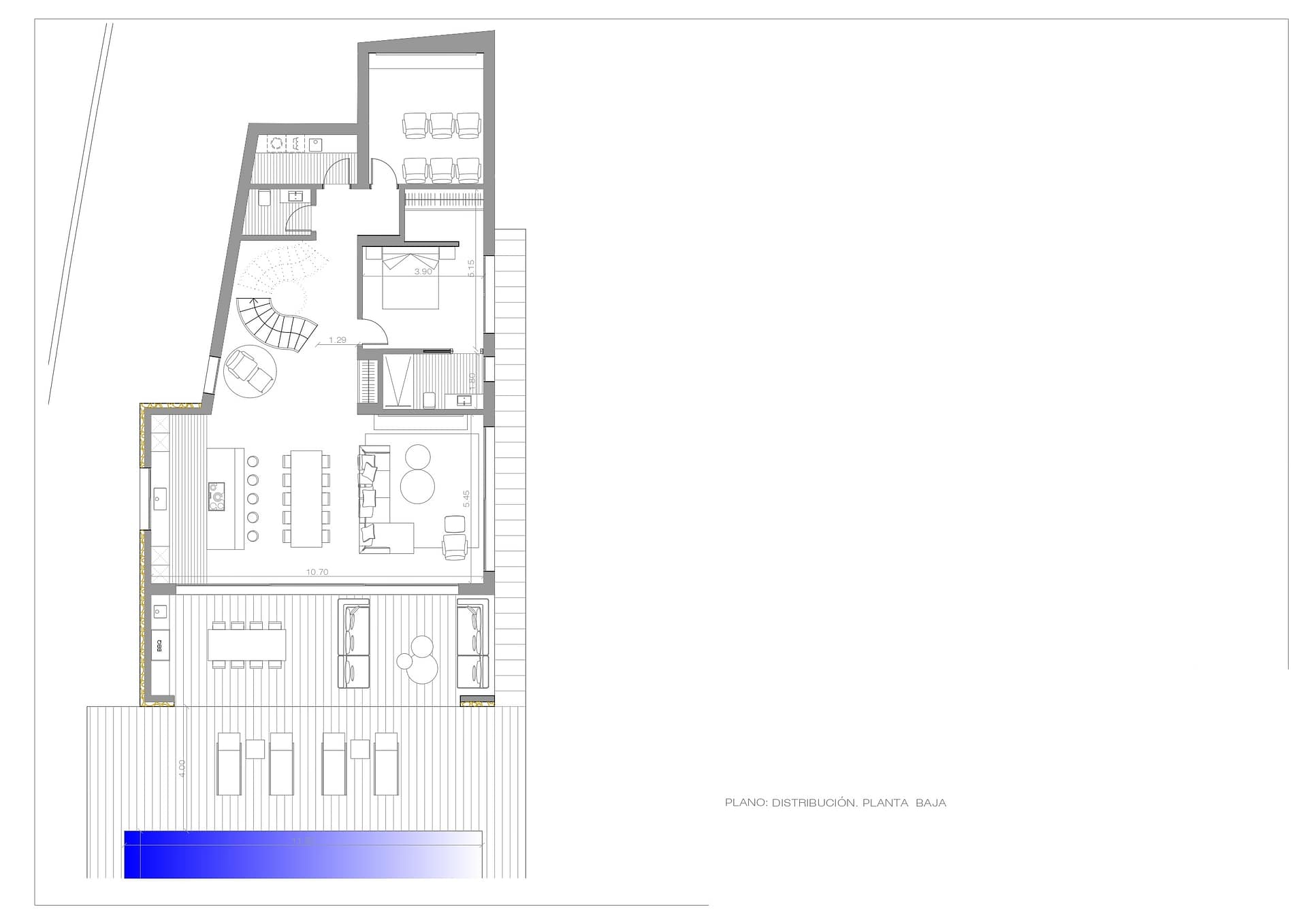 Two of the bedrooms also feature a private balcony with beautiful views. Lower Floor: A stylish spiral staircase leads to a large, bright living room with an open-plan kitchen and central island. This floor also includes a guest toilet, a cinema room, laundry room, and an additional bedroom with en-suite bathroom. Outside, a spectacular 11.5 x 4 m infinity pool blends with the spacious terrace and BBQ/chill-out area, offering panoramic views of the sea and the charming landscape of Moraira.