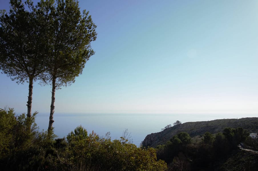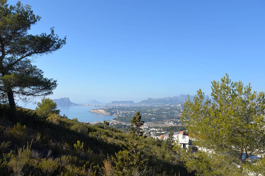This beautiful high-tech luxury villa with building license is situated in a dead-end street in El Portet, one of the most popular urbanisations of the Costa Blanca. The villa offers stunning views of the Mediterranean Sea, the Peñon de Ifach, Sierra de Bernia and in the evening the illuminated skyline of Calpe.