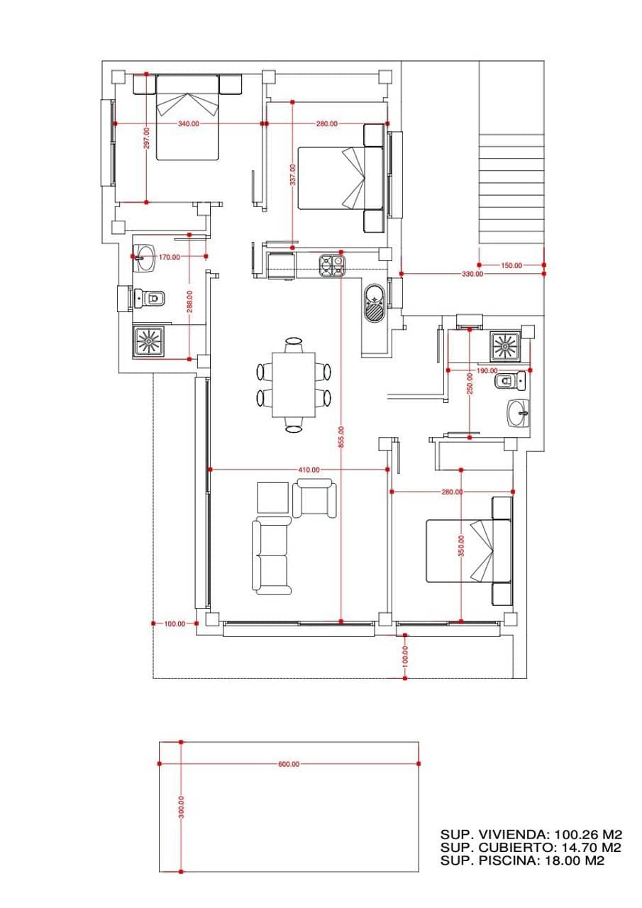 3 bedroom – 2 bathroom – Build 115 m2 – Plot 299 m2