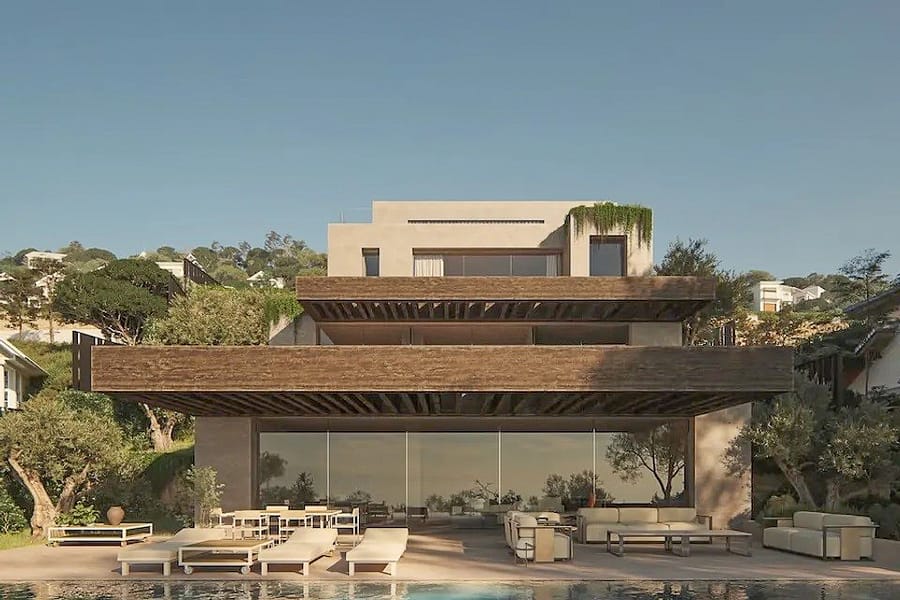 From the moment you step into this home, it becomes clear that this is a place where art and architecture converge. The entrance, a modern cassette structure, frames the surrounding landscape, offering a stunning introduction to the villa’s beauty. From here, you descend into the heart of the home, where each level reveals itself like a new chapter in a story.