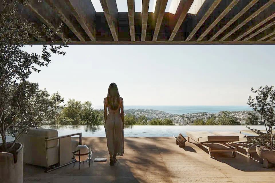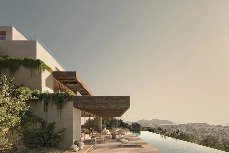 Set on the stunning slopes of Benissa Costa, this newly built villa is a contemporary marvel, designed to flow effortlessly with the natural landscape. Blending organic elements like concrete platforms and wooden pergolas, the home feels like an extension of the earth itself. Each level cascades down the hillside, creating a dynamic, luxurious retreat that redefines coastal living.
